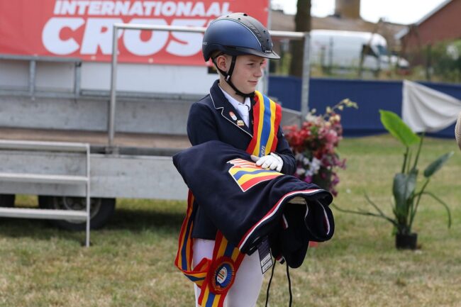 Thijmen wint na het kringkampioenschap L2, ook de dressuurfinale in Wierden.