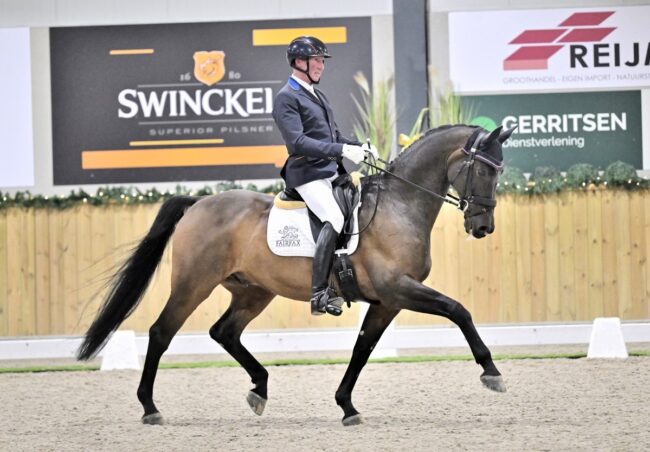 Frank en Alphaville hebben de eerste selectiewedstrijd van de KNHS Para Dressuur Trophy voor Jumping Amsterdam gewonnen met dik 73% en bijna 72%.